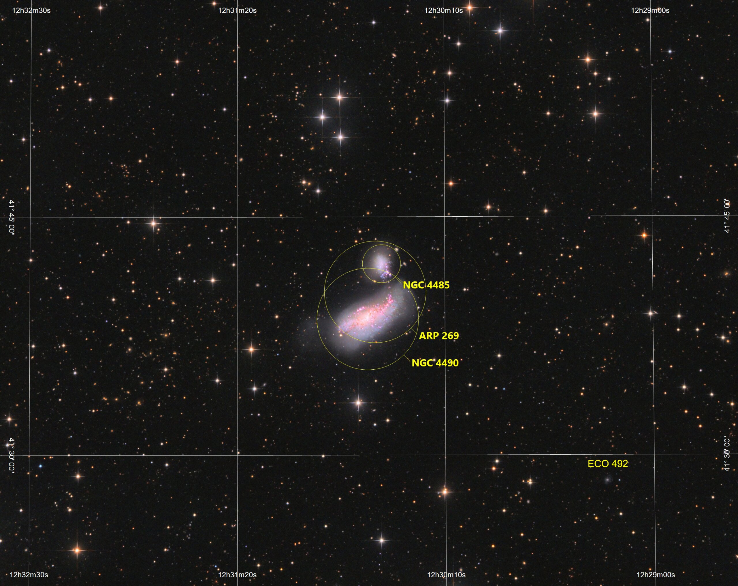 ARP269, NGC4490 & NGC4485 in Canes Venatici, ASAN10 Trius 694 Ha 7nm 345min, L658 min, ASK8 Trius 694 RGB a‘ 196 min, Gahberg 20200411-0421