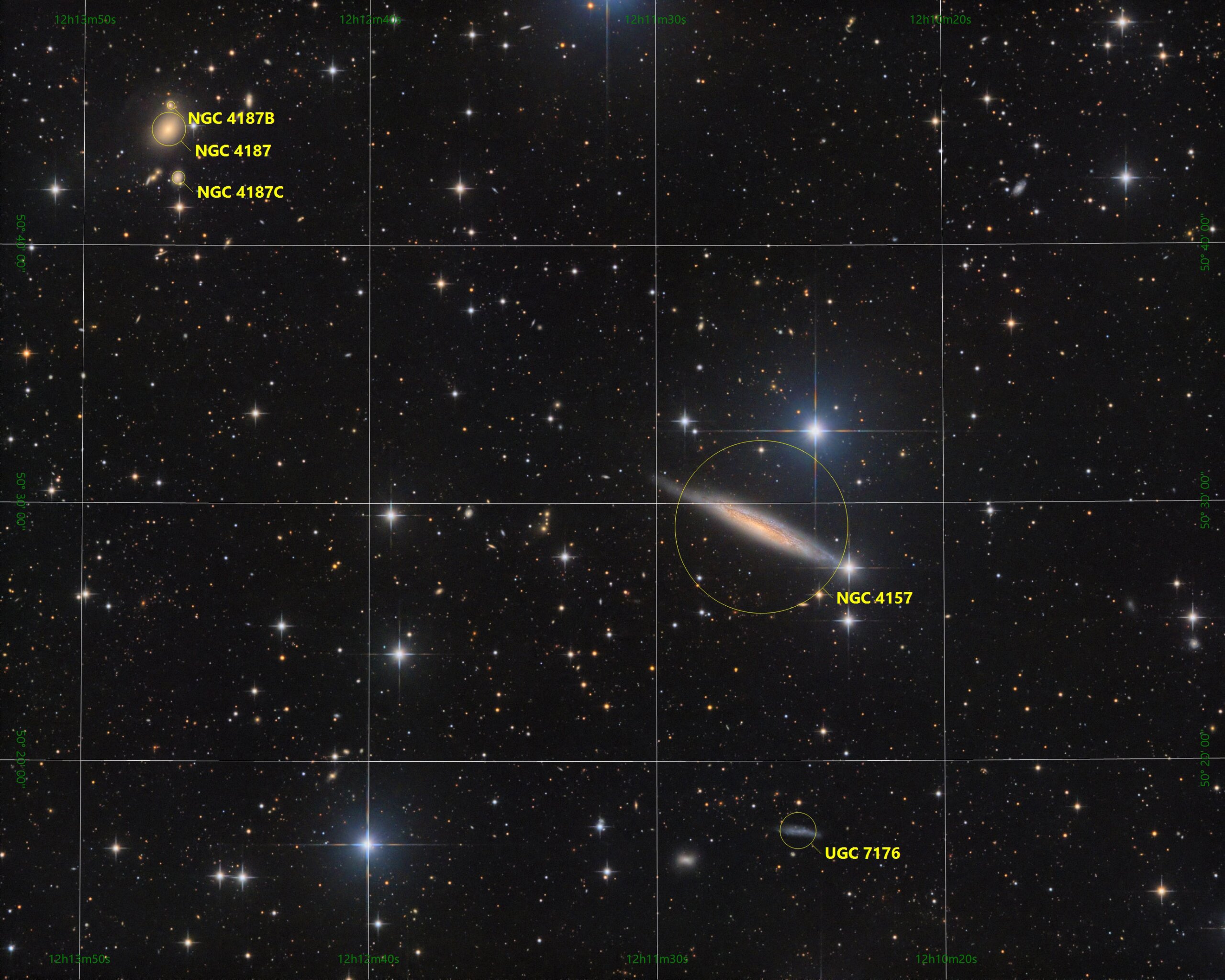 NGC 4157, 4187 in Ursa Major,ASAN10 Trius 694 L 467min, ASK8 Trius 694 RGB a‘ 308min total 17,6h, Gahberg 20220327 -0328