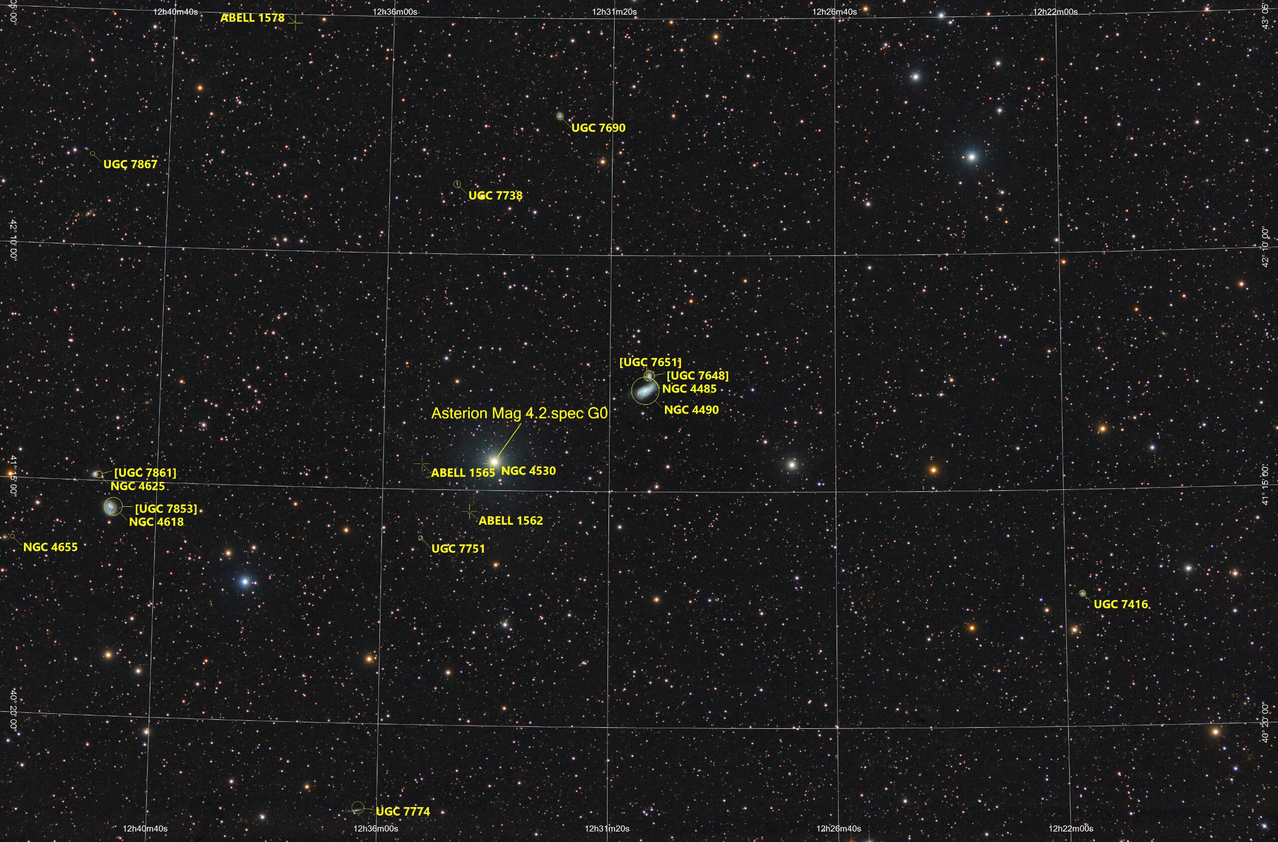 NGC4490-Grid Esprit EOS6D NGC 4490, 4618 in Canes Venatici, Esprit 80-400, Canon EOS6D ISO 1600 576 min Gahberg 20200411 - 0420