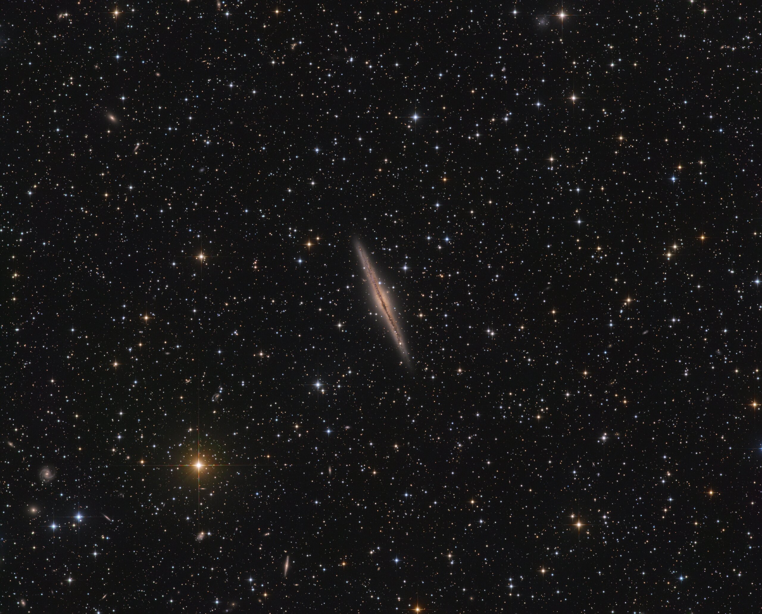 NGC 891 in Andromeda, ASA N10, DSPro 2600m, L 29x500s, ASK8“ Nexus 0,75, RGB a‘18x250s t otal 7,8h Crop ASA DDM85, Gahberg 20231220