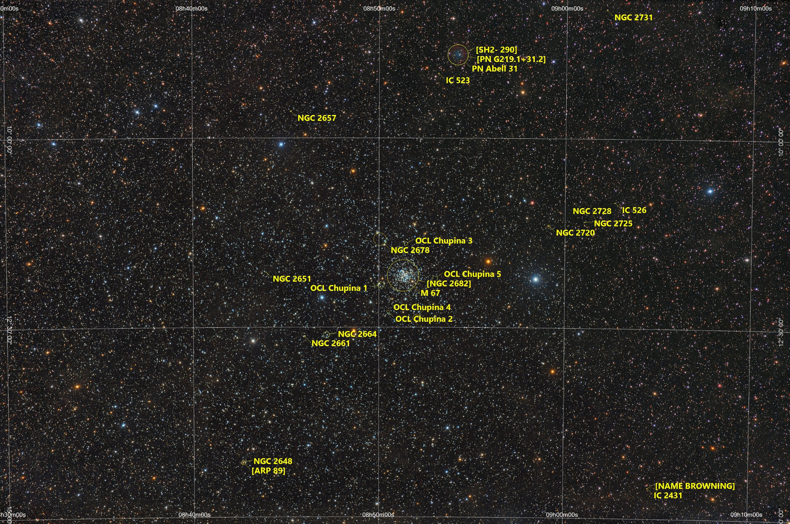 M67, Sh2-290 in Cance, Canon EOS6Da EF200 ISO800 219 x 240s total 876min iEQ30Pro, Gahberg 20200315 - 0320