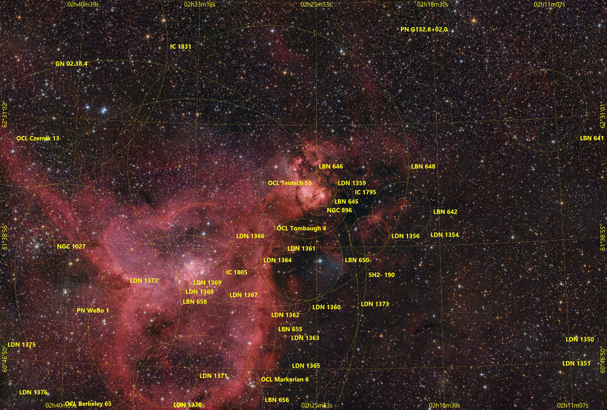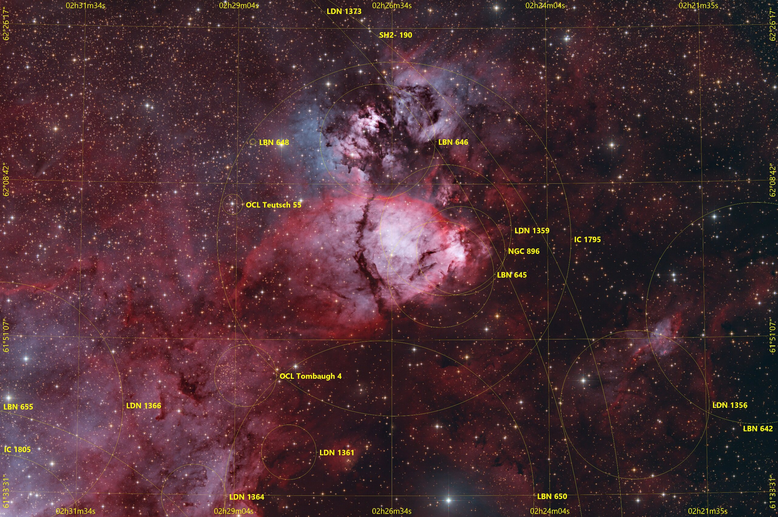 Sh2-200, HDW2 in Cassiopeia, ASA N10 DSPro 2600m L31x500s, Ha 53x900s, OIII 36x900s, ASK8/f3 Nexus DSPro 2600C 87x300s total:34,5h ASA DDM85, Gahberg…