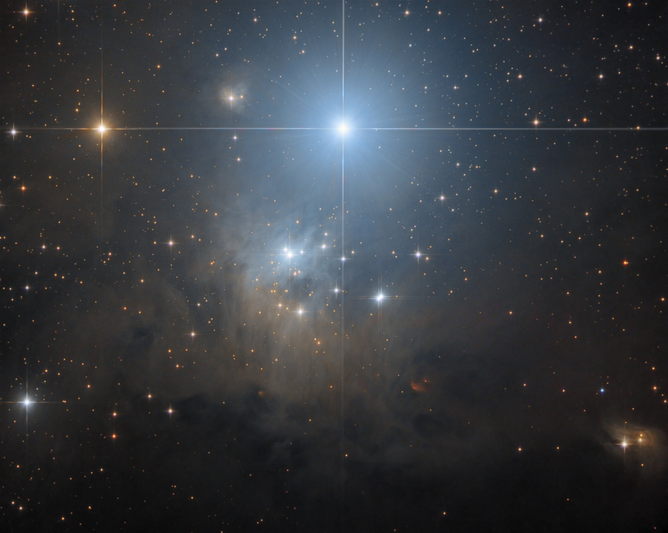 Stern Atik (omi Per Mag 3.9) und IC348 ASA N10 @1050mm Paracorr Trius 694 L 575min, ASK8" @540mm SXV-H9 RGB a'200min. Gahberg 20161222 - 1229 Ic348 ist in die Dunkelnebel Barnard 5 und 43 eingebettet siehe folgende > Weitfeldaufnahme.