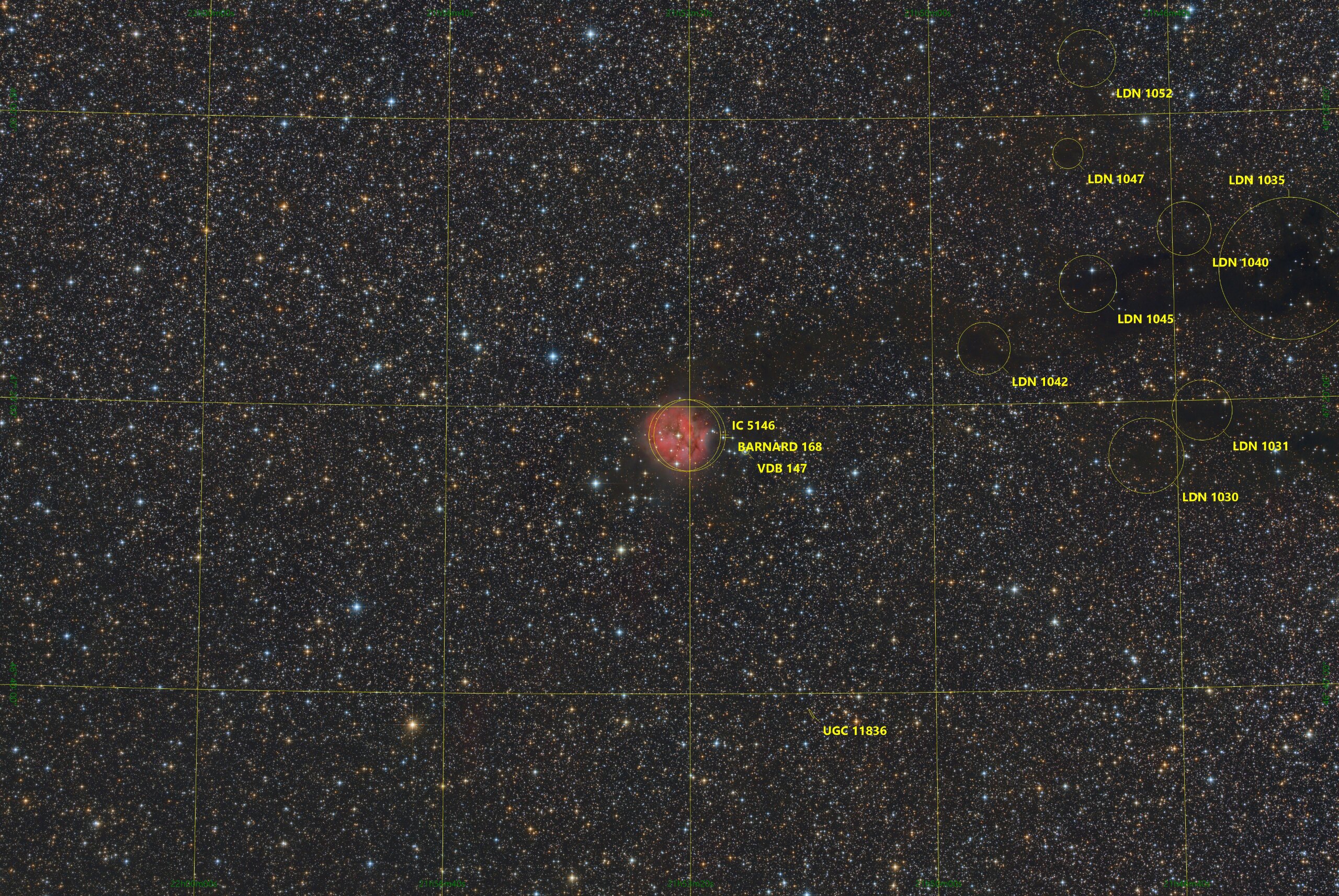 IC 5146, VDB 147 in Cygnus,Takahashi Epsilon 130D, DSPro 2600C, Gain 0, Offset 100, 75x300s, total 6,25h, ASA DDM85,Gahberg 20230821