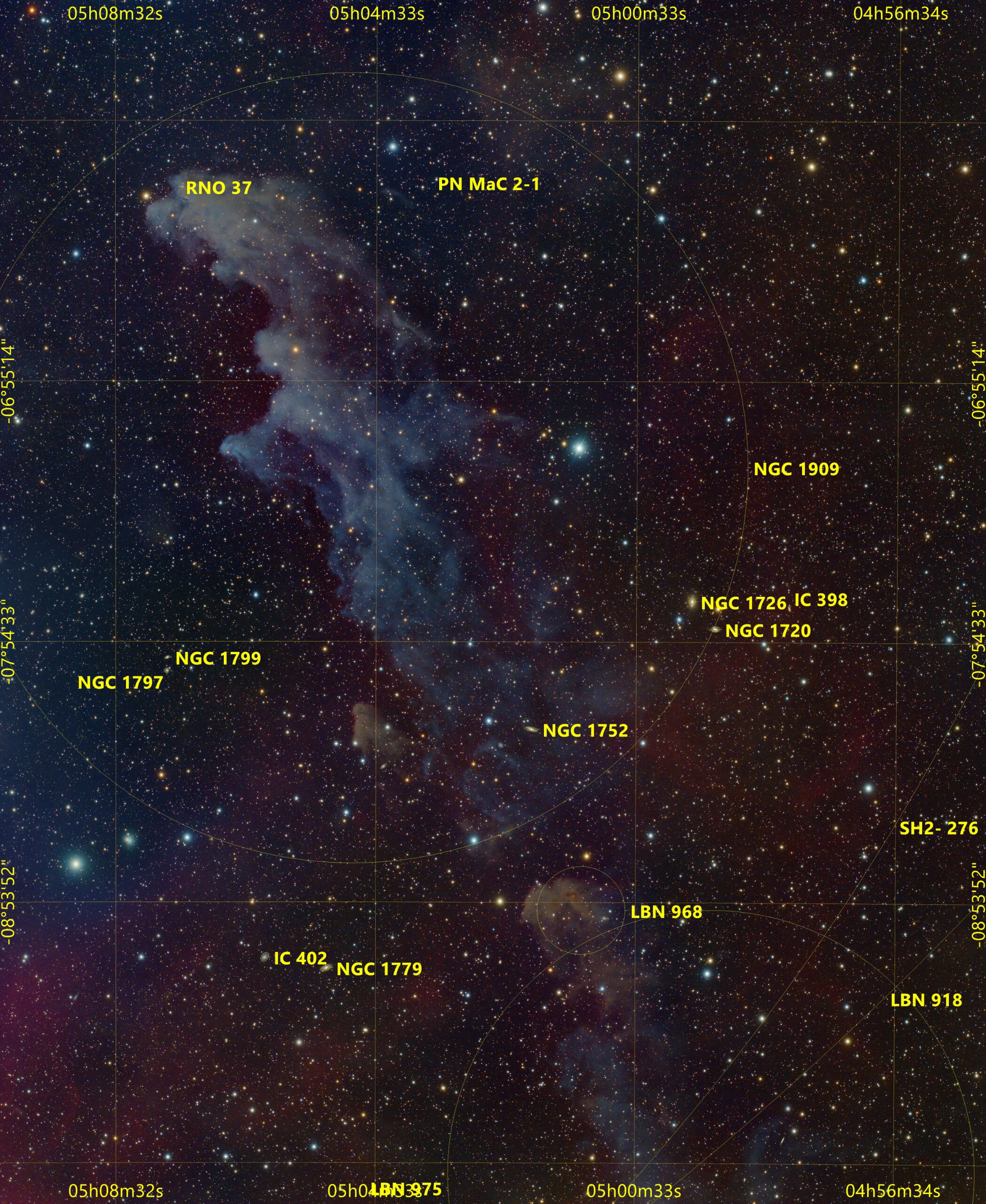 NGC 1909 in Eridanus, Redcat71, IMX571C, 2x Mosaik, Gain 0, Offset 100, 100x300s each Panel, total 8,3h, iEQ30, Gahberg 20241202-1226
