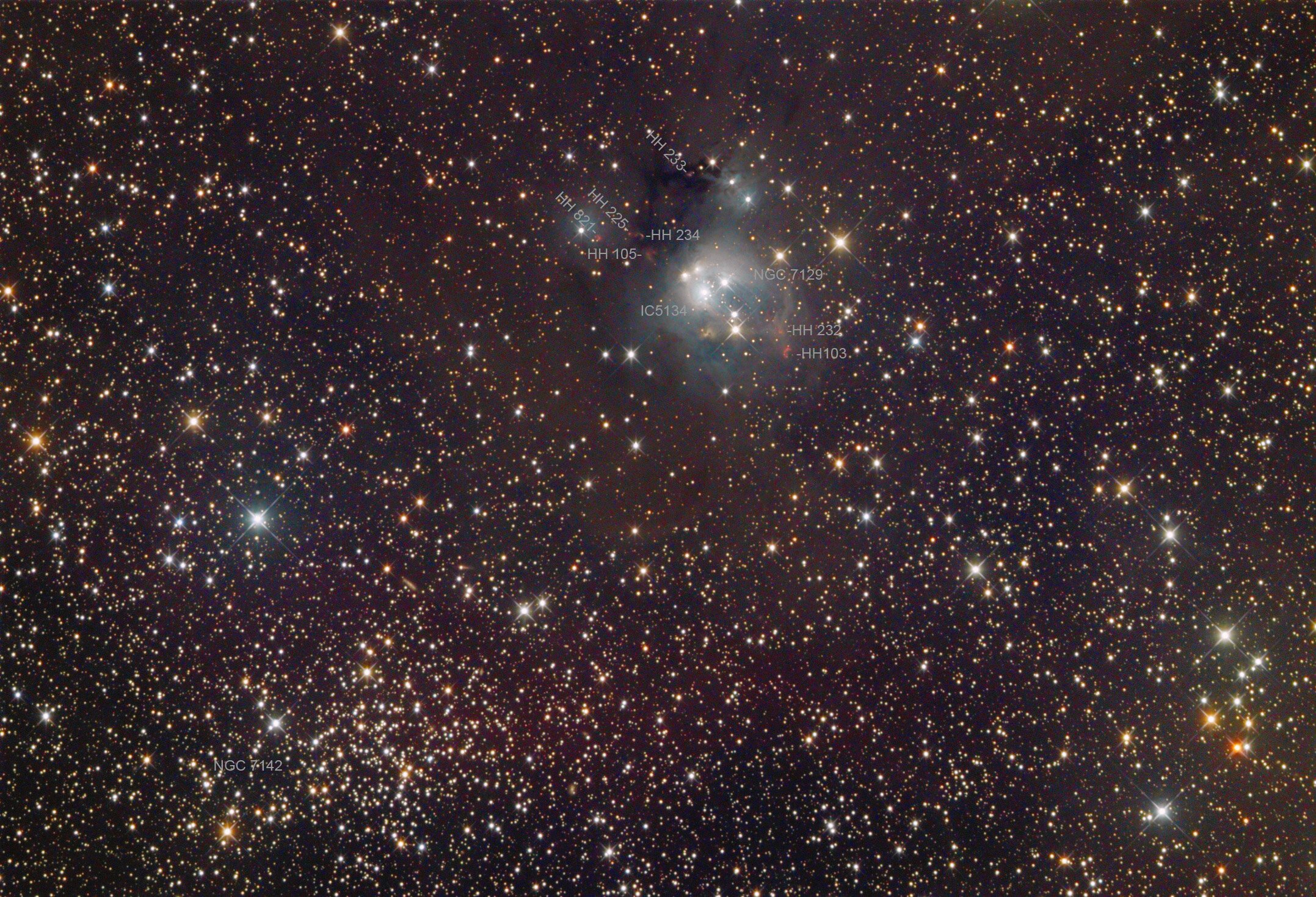 Ngc7129ID Ngc7129,7142 IC5134 LDN 1179,1182 ASA N10“ @950mm St10XME L 390 min Televue NP101 RGB a'131min 5min Subs Gahberg 201008090906