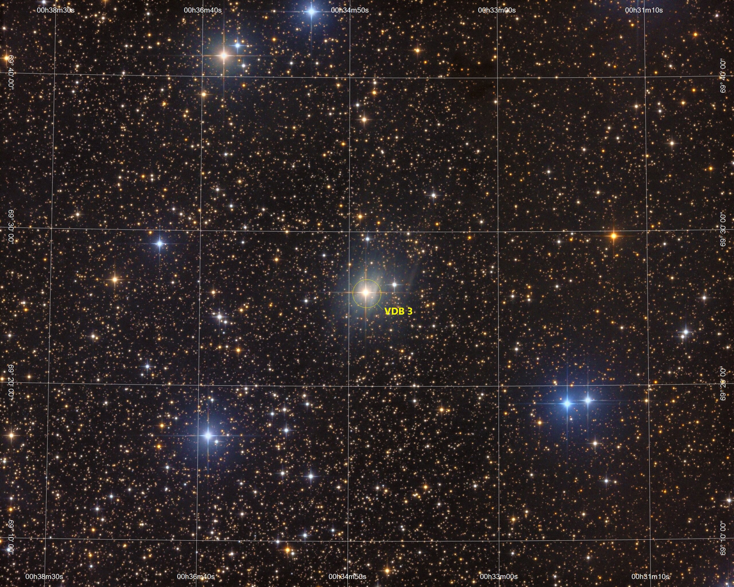 VDB 3 in Cassiopeia, ASAN10 Trius 694 L 650min, ASK8 Trius 694 RGB a‘ 188,min, Total 20.2h, Gahberg 20211106 - 1203