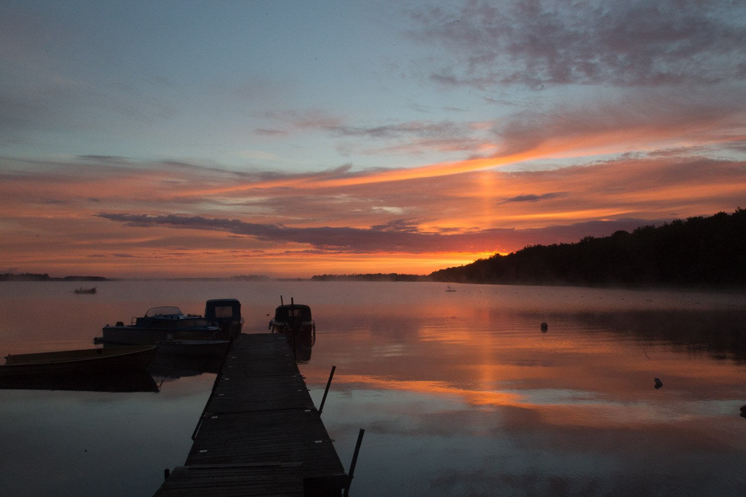 Die Lichtsäule ist ein Lichteffekt in der Atmosphäre und gehört zu den Haloerscheinungen. Ausgehend von der Sonne erstreckt sich ein linear ausgedehnter schmaler Lichtstreifen senkrecht nach oben – seltener auch nach unten. Lichtsäulen sind meist dann zu beobachten, wenn die Sonne nah ober- oder unterhalb des Horizonts steht. Lichtsäulen entstehen durch die Spiegelung des Sonnenlichts an hexagonalen Eisplättchen, die bei nahezu Windstille langsam absinken und sich dabei vorzugsweise horizontal in der Luft ausrichten. Sie sind deshalb nur bei entsprechend windarmen Wetterbedingungen zu beobachten. Im Gegensatz zu den verwandten Haloerscheinungen Unter- und Übersonne und der Tatsache, dass die sechseckigen Eisplättchen in ihrer horizontalen Ausrichtung wechselnde Kippwinkel aufweisen, wird ähnlich einem Glitzerpfad der Sonne auf einer leicht bewegten Wasserfläche eine Lichtsäule sichtbar. In sehr seltenen Fällen und bei sehr konstanter und geringer Luftbewegung sind auch leicht gebogene Lichtsäulen möglich. Quelle: Wikipedia