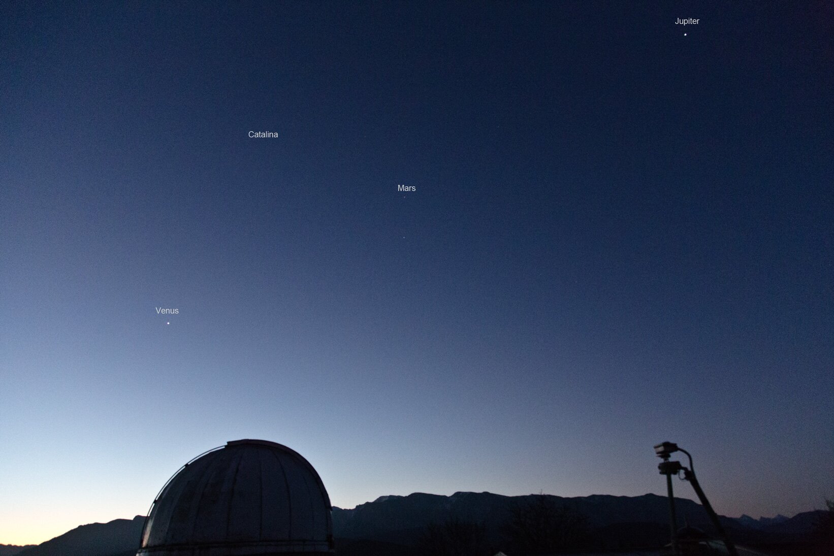 Venus, Mars und Jupiterund die Position von Komet Catalina am Morgen des 20.12.2015