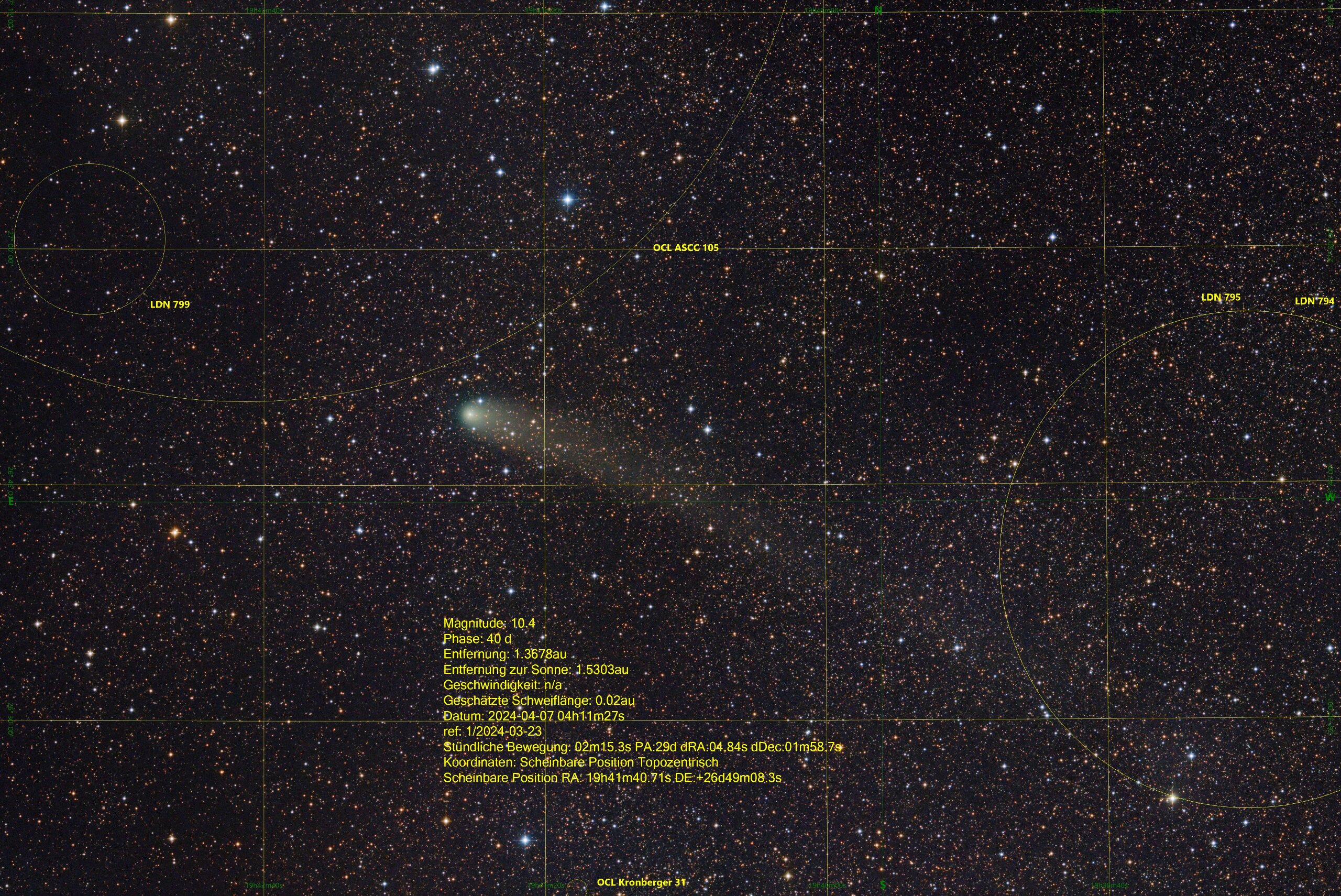 C/2021 S3 (PANSTARRS) in Vulpeculae, ASA N10 DSPro 2600m L54x100s, ASK8/f3 Nexus DSPro 2600C 55x100s total: 3h ASA DDM85