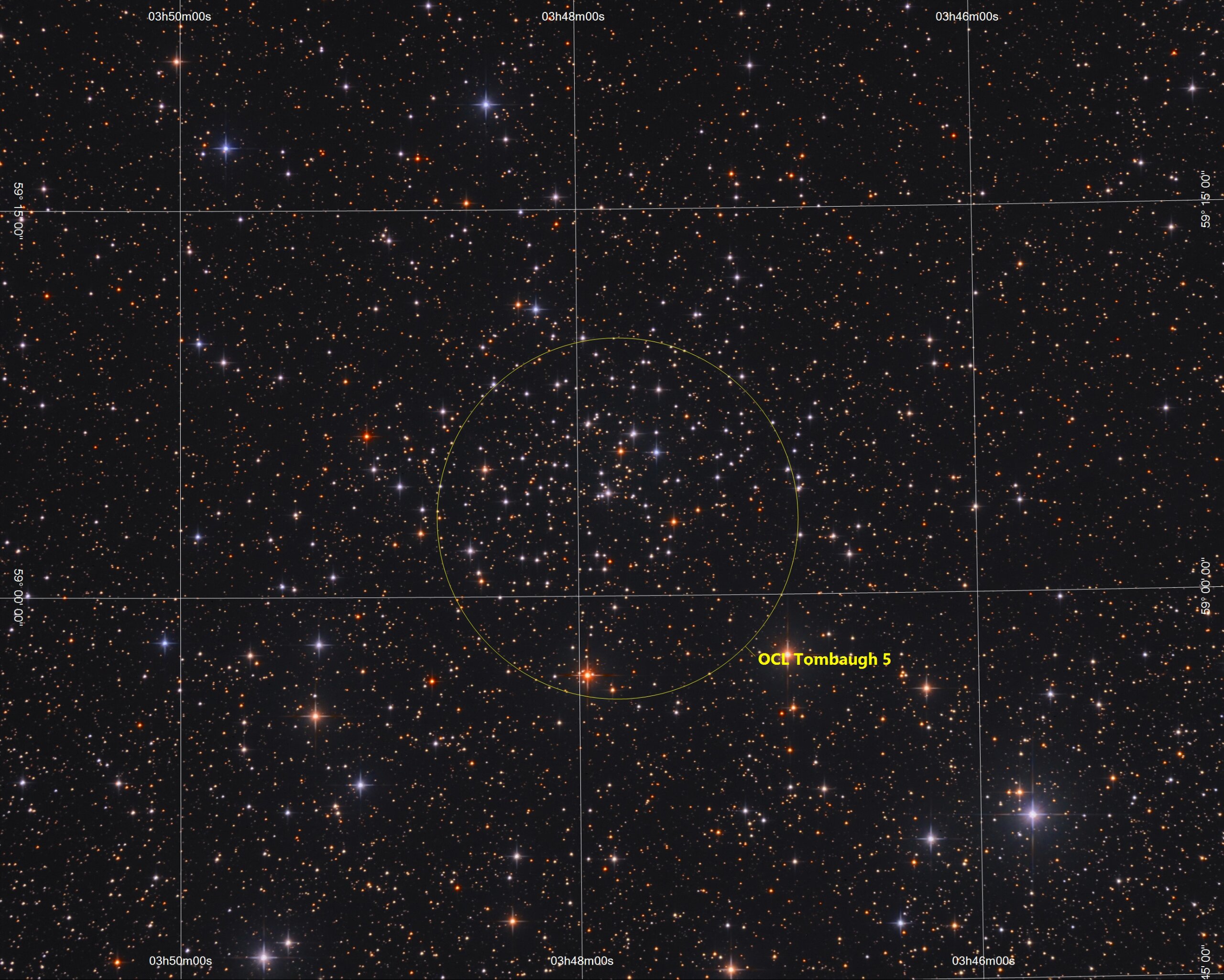 Tombaugh5-Grid OCL Tombaugh 5 in Cameloparsdalis,ASAN10 Trius 694 L 175min, ASK8 Trius 694 RGB a‘30 min, Gahberg 20191026