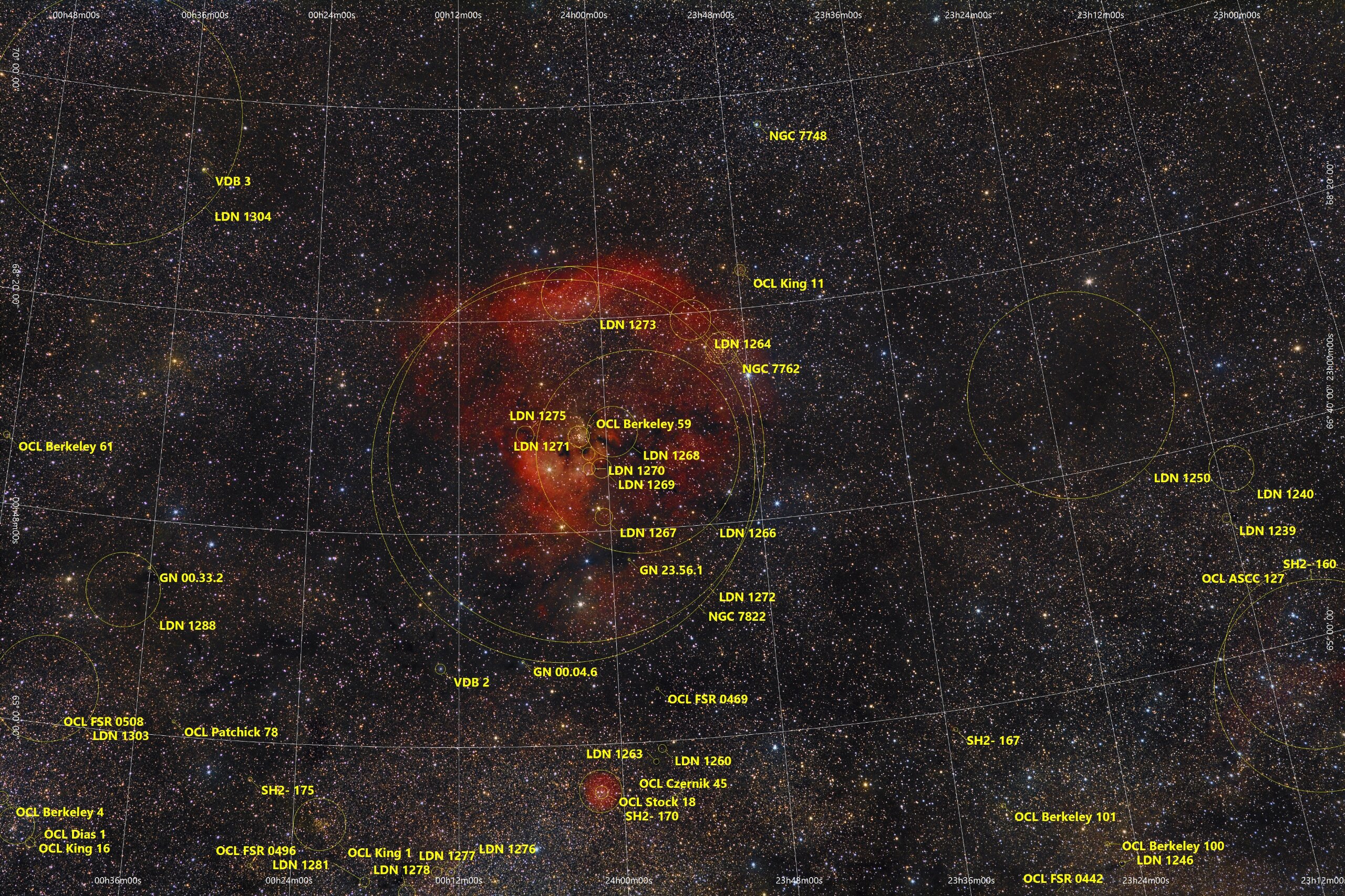NGC7822-Grid NGC7822 in Cepheus Canon EOS6Da EF200 ISO1600 96 x 5min iEQ30Pro Gahberg 20201117 - 1205