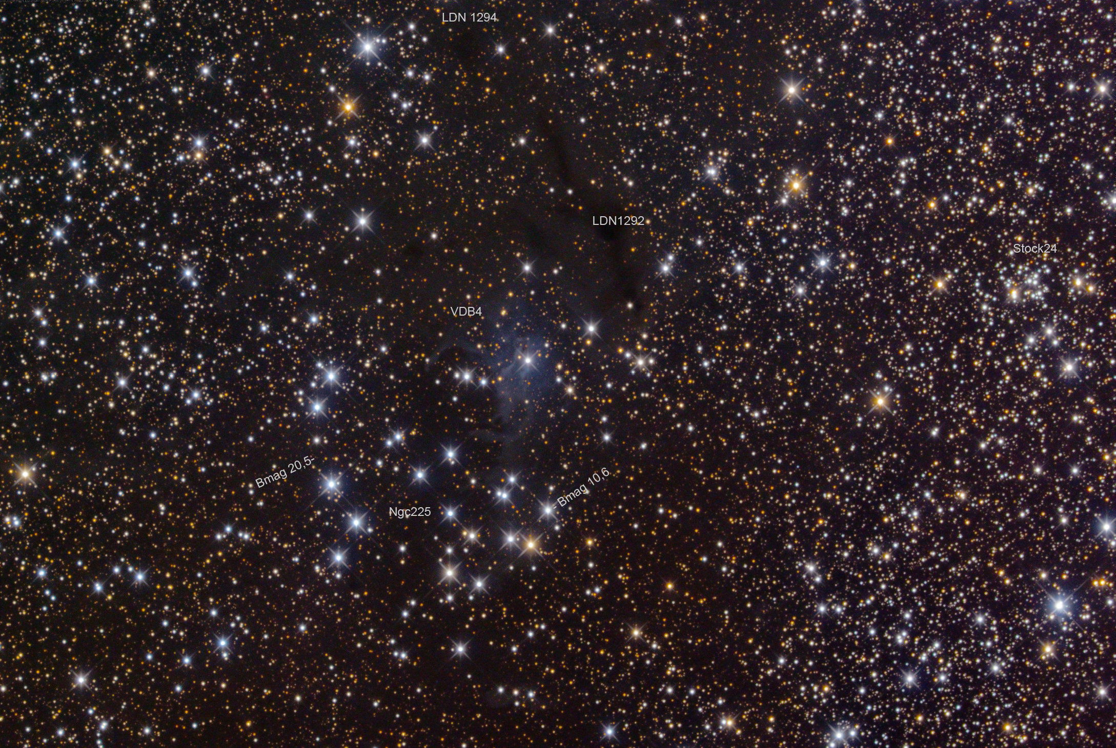 Ngc225, VDB4,LDN1292,Stock24 in Cassiopeia 00h42+61.61 Intes Mk69@900mm St10XME 610min L NP101 189,184,222minRGB 5 min Subs Gahberg 20081101-1103
